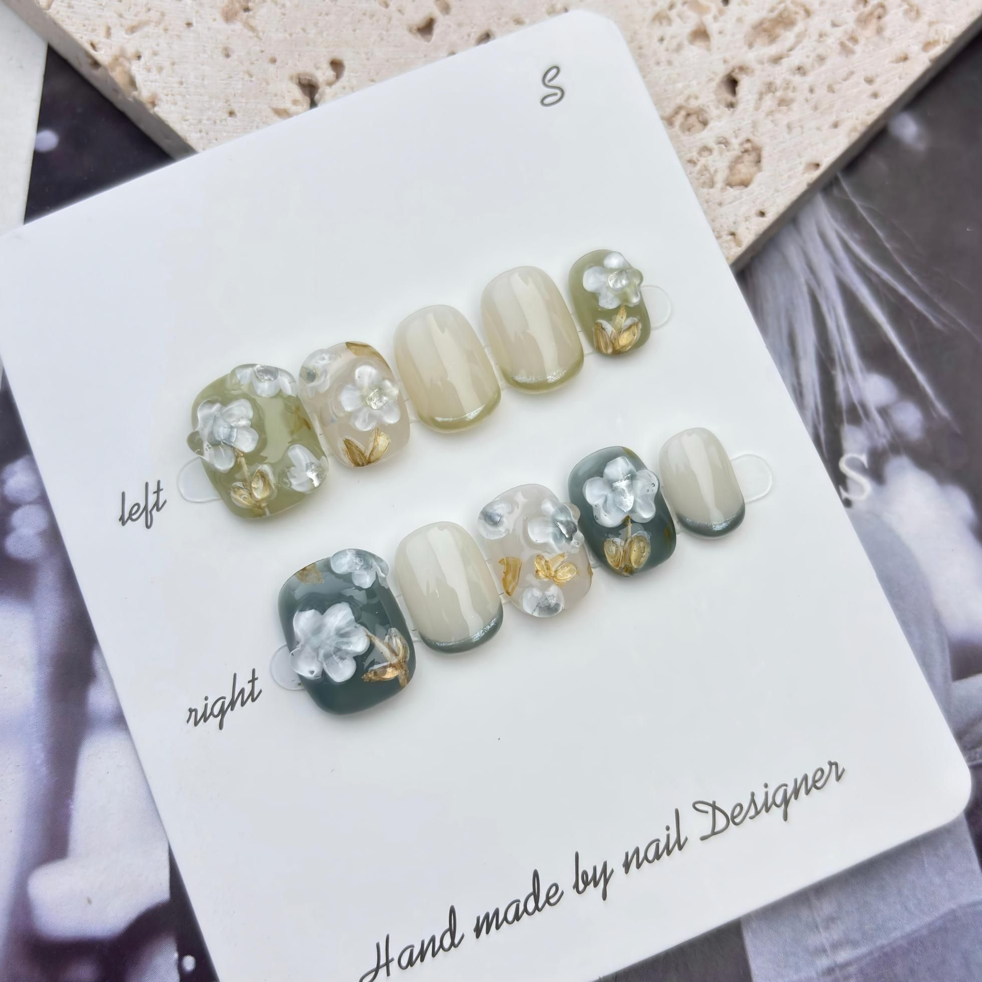 Maris ネイルは、繊細な手仕事で一つ一つ作られており、細部にまでこだわりが感じられます。素材は高品質で耐久性に優れており、長時間付けていても安心です。