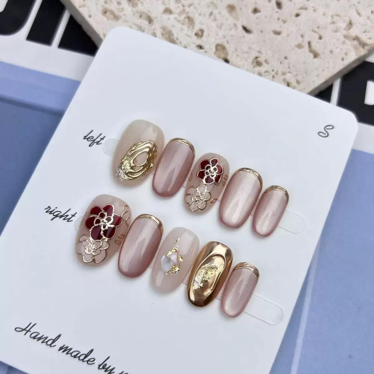 Maris ネイルは、繊細な手仕事で一つ一つ作られており、細部にまでこだわりが感じられます。素材は高品質で耐久性に優れており、長時間付けていても安心です。